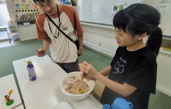 素麵のつゆを分けるのは、高学年の仕事なんだ