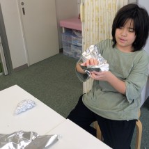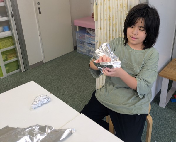 アルミホイルをおにぎりみたいに握ってみよう♪