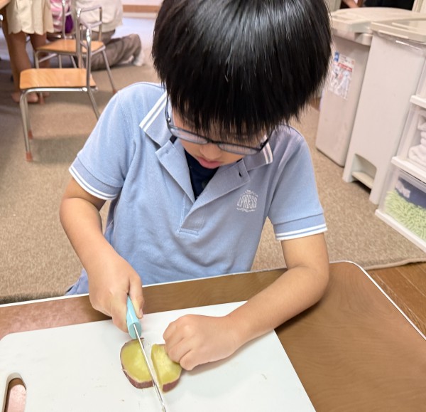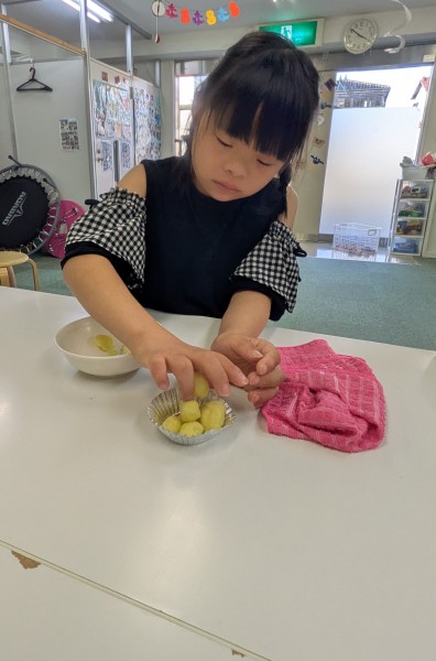 今年のお月見団子は収穫を感謝してさつま芋で☆