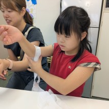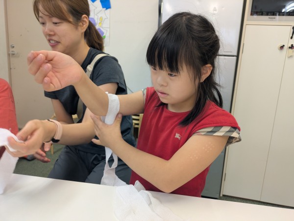 余った包帯を腕に巻いちゃおう♪怪我した時はこうするのかな?