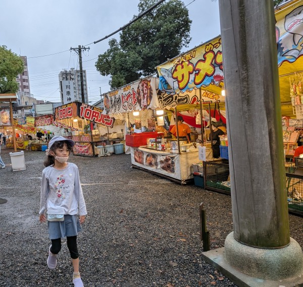 川原神社秋の例祭に来たよ。今年も馴染みの屋台がいっぱいだ☆