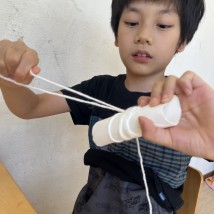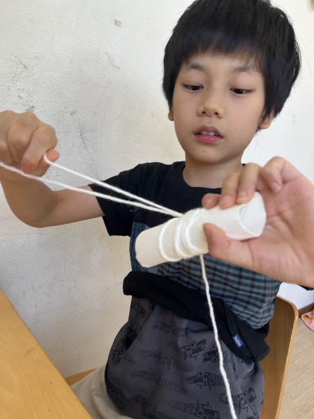 ぐるぐる巻いてお化けを作っているの