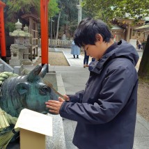 この牛に触ると素敵な縁に結ばれるんだよ☆
