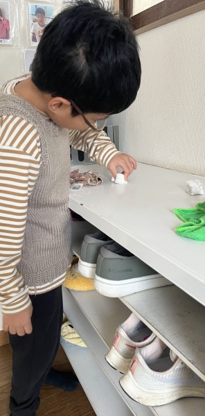 ロッカーの裏も丁寧に拭いておこうかな