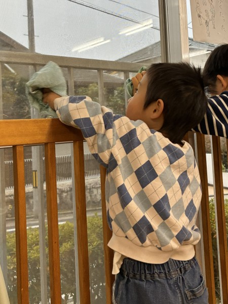 大掃除、窓をぴっかぴかにするんだ~