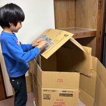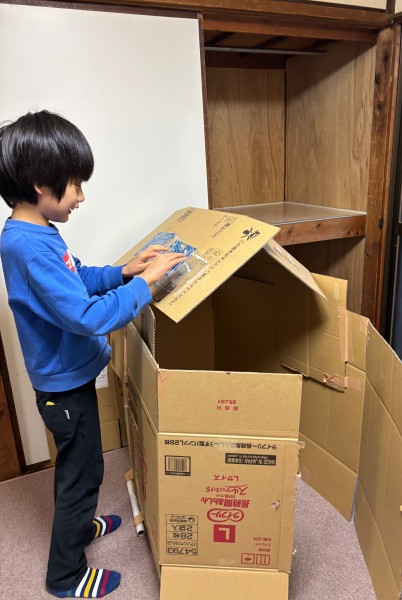 秘密基地を作ったよ。屋根は青がいいね♪