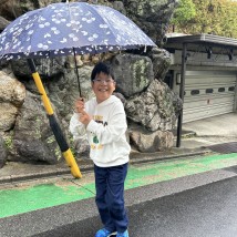 雨降りの中、傘を差してお散歩中です。