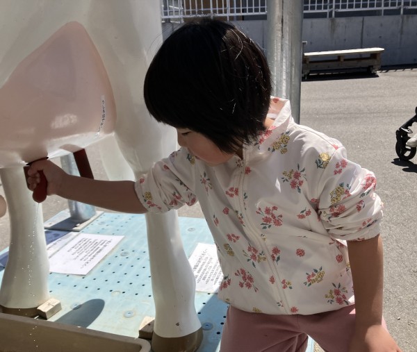 こうやったら牛乳がでるんだね☆