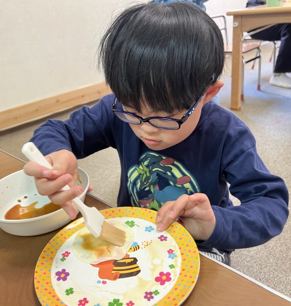 1枚目はしょうゆ味で作るよ☆